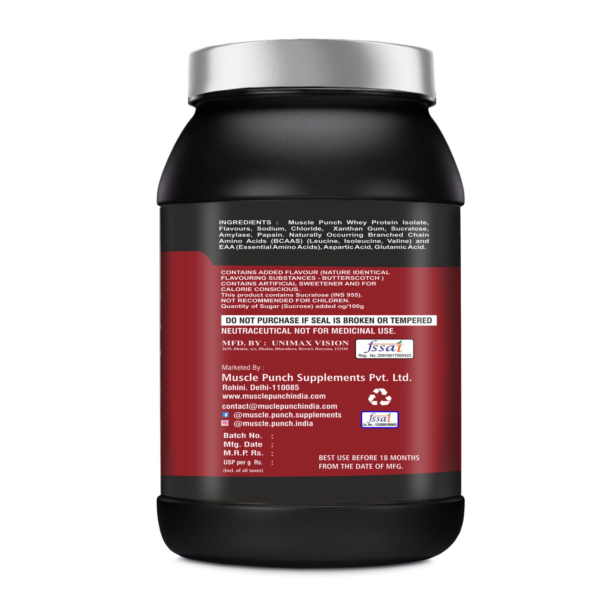 Muscle Punch | 100% Whey ISOLATE Protein – PERFORMANCE SERIES | Whey Protein | BUTTER SCOTCH, 1 KG