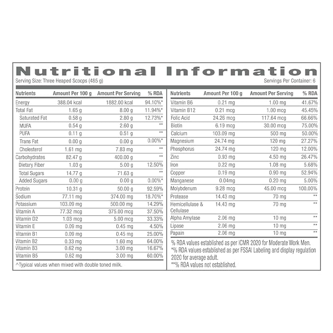 GNC Pro Performance Weight Gainer is the best companion for muscle growth and post-workout recovery. Each serving delivers 73g of high-quality protein, 2200 calories, and 400g of carbs, providing the essential fuel your body needs to gain mass and boost endurance. This Weight Gainer powder is available in two super delicious flavors, Double Chocolate and Vanilla, to treat your taste buds. It is enriched with vitamins, minerals, and digestive enzymes, ensuring easy digestion and optimal nutrient absorption. The best part about this weight gainer is that it contains zero added sugar, artificial colors, or preservatives, making it a clean and health-conscious choice. It is also backed by prestigious certifications, including WADA and FSSAI, ensuring the highest safety and quality standards. "