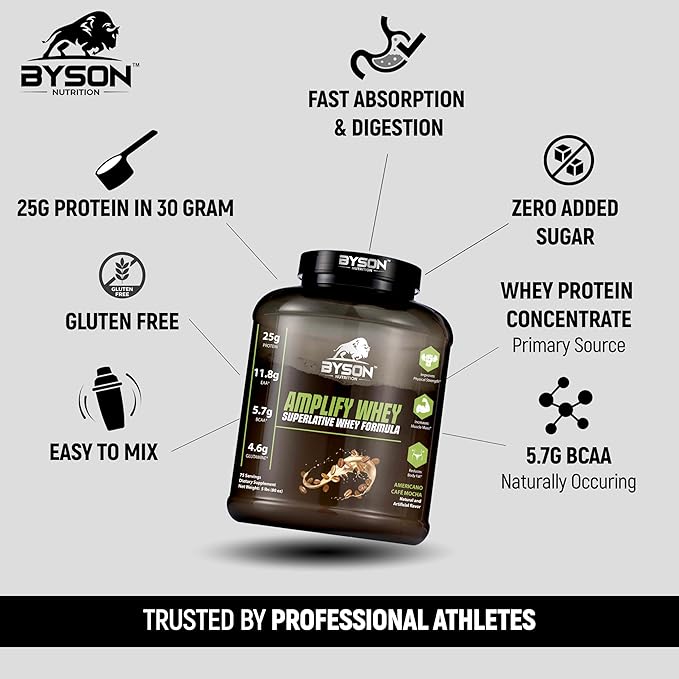 About BYSON NUTRITION Amplify Whey Protein Powder 5 Lbs 25g Protein Supplement Powder for Men, Women (Blueberry Muffin)