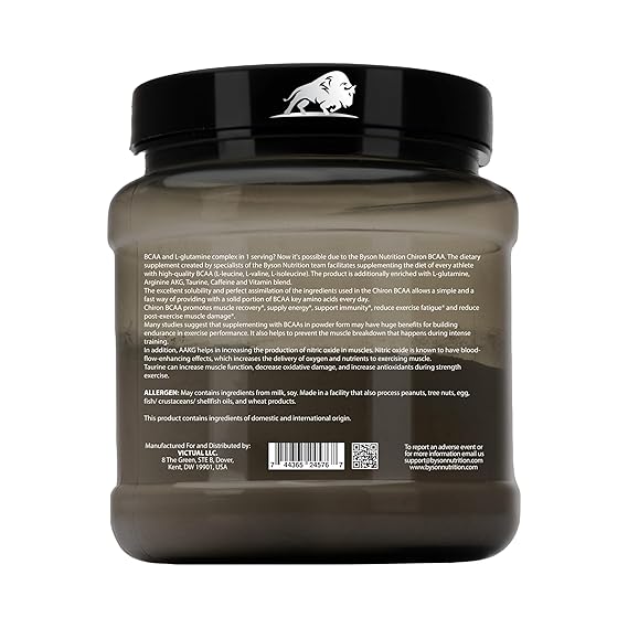 BYSON NUTRITION Chiron BCAA is a high-quality powder supplement packed with essential Branched-Chain Amino Acids (BCAAs) Generous 450-gram size ensures a lasting supply, making it convenient for regular use in your workout routine.Unleash the strength of Chiron BCAA, a groundbreaking formula engineered to elevate your performance and recovery to unparalleled levels.