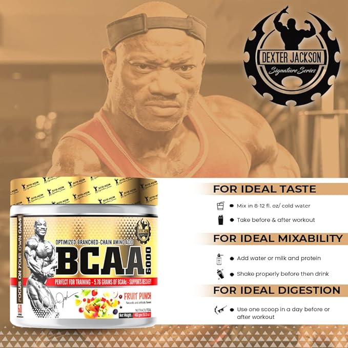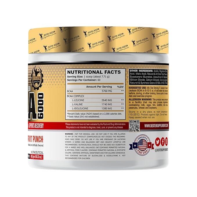 About Dexter Jackson BCAA 6000 |Fruit PunchFlavor | 60 Servings, 463g - Advanced Branched-Chain Amino Acid Formula for Optimal Muscle Recovery