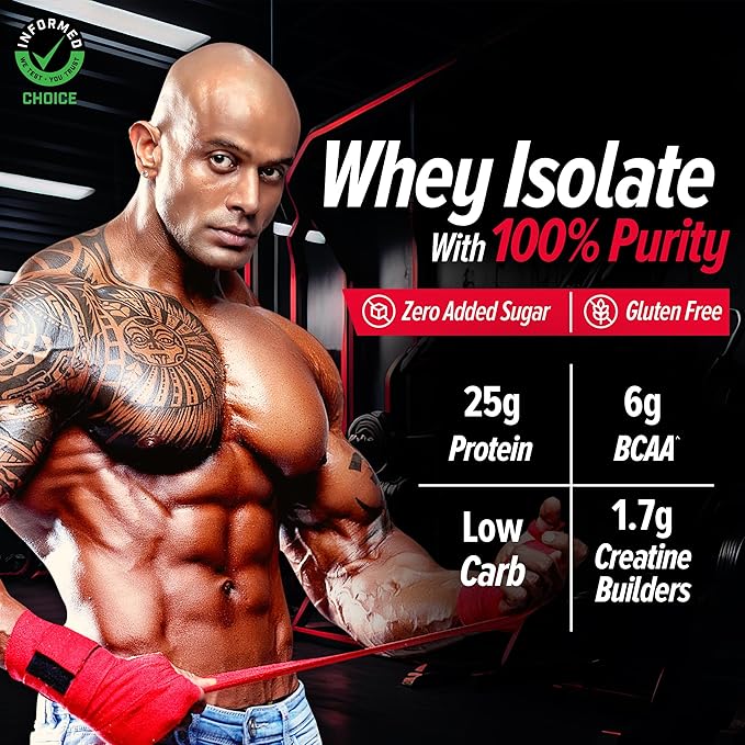 GNC AMP Pure Isolate whey protein. It is prepared using a 20-STEP, quality-driven process to produce the purest, ultra-clean Isolate. GNC’s whey isolate is formulated with 6gms BCAAs to help build more lean muscle mass and prevent muscle cramps & fatigue. It also contains 1.7gm of Creatine building blocks and 19.6gms of muscle-supporting amino acids to boost your athletic capacity and keep the exercise momentum going. GNC whey isolate protein is easily absorbable in your body for enhanced metabolism and muscle repair. Levelling with its nutritional performance, this whey protein also has an amazing flavour to keep your taste buds happy. In addition, it has zero added sugar and low carbs for adapting to your lifestyle preferences. GNC's isolate protein is World Anti-Doping Agency (WADA) approved and Informed Choice certified.