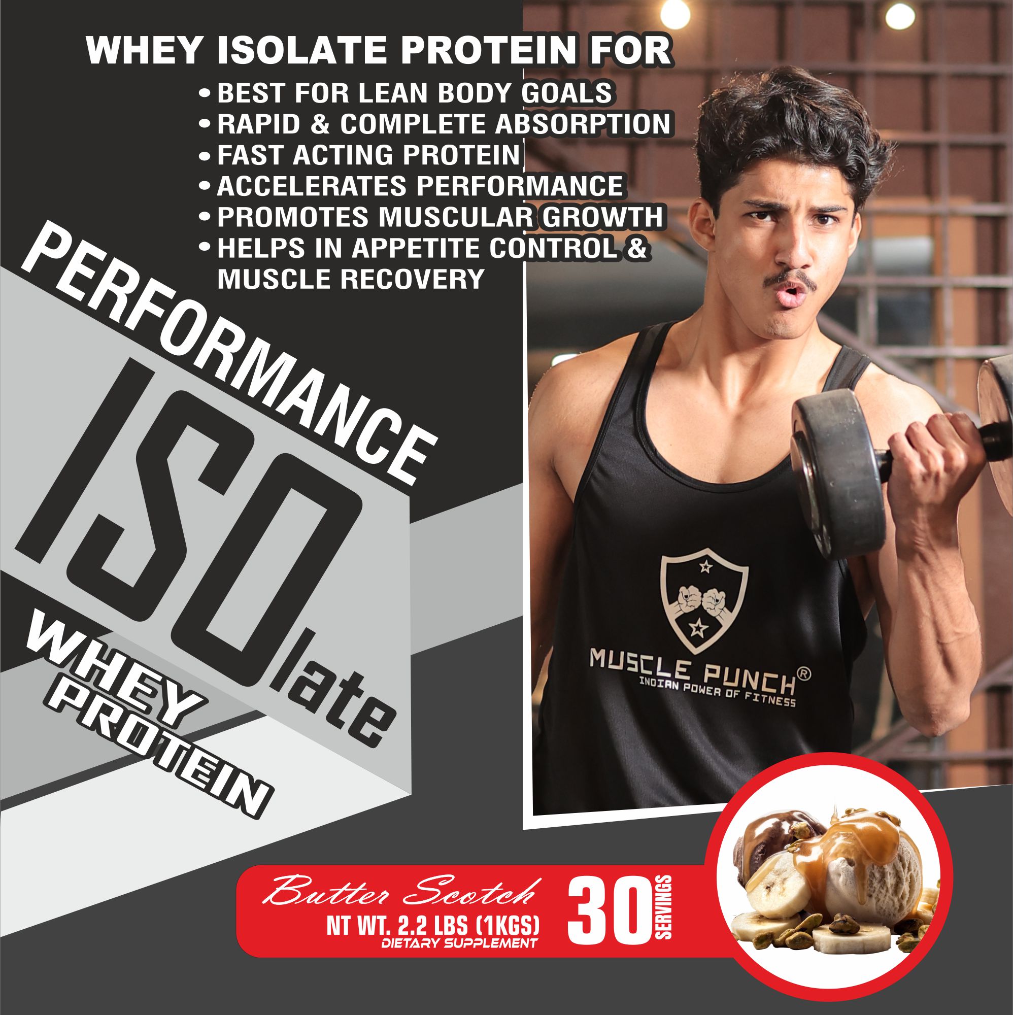 About Muscle Punch | 100% Whey ISOLATE Protein – PERFORMANCE SERIES | Whey Protein | BUTTER SCOTCH, 1 KG