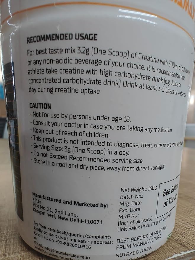 About Muscle Science Creamax 50 Serving Flavoured Creatine 160gm. Blend of 2gm 100% Pure Micronized Creatine monohydrate and 1gm Creatine HCL for Strength, Power and endurance (Mango))