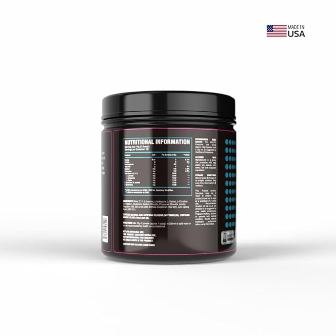 5000mg BCAA in 2:1:1 Ratio Supports lean muscle growth, enhances endurance, and prevents muscle breakdown during intense training 1500mg L-Citrulline: Boosts nitric oxide production, promotes vascularity, and improves blood flow for intense muscle pumps and better delivery of nutrients 1500mg L-Glutamine Aids in faster recovery, reduces muscle soreness, and supports immune health for consistent training