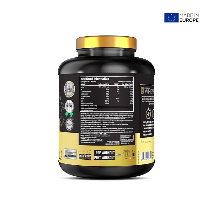 25g Protein per Serving: Each serving of OSN Premium Whey Protein provides 25 grams of protein, supporting muscle growth, recovery, and maintenance, making it an ideal choice for athletes and fitness enthusiasts.Optimal BCAA and L-Glutamine Content Enriched with 6.6 grams of Branched-Chain Amino Acids (BCAAs) and 5.2 grams of L-Glutamine per serving, this formula aids in muscle repair, reducing muscle soreness, and enhancing recovery post-workout.Delicious Chocolate Charge Flavor Enjoy the rich and indulgent Chocolate Charge flavor that makes your protein shake a delightful treat, satisfying your taste buds without compromising on nutrition.