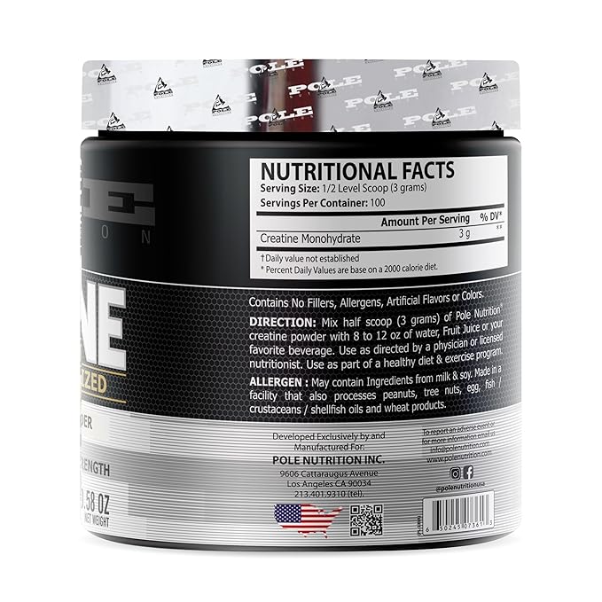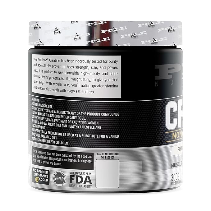 About Pole Nutrition Creatine Monohydrate - Micronized Pharmaceutical Quality Powder | Unflavored 300g | Enhance Strength, Power, and Muscle Performance