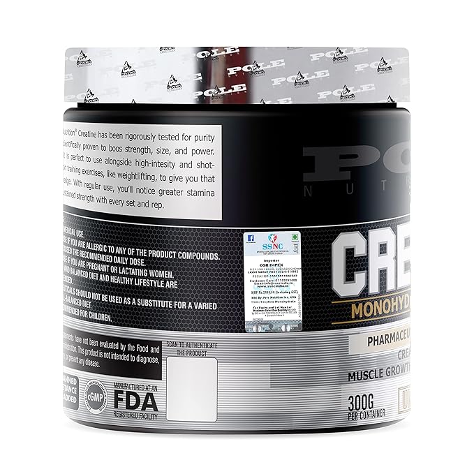 Micronized Creatine Monohydrate Experience superior absorption with Pole Nutrition's micronized pharmaceutical-grade creatine powder for enhanced strength and power. Unflavored Versatility Mix seamlessly into any beverage or shake without altering taste, offering a convenient way to elevate your workout routine. 300g of Pure Power Each jar contains 300g of high-quality creatine monohydrate, providing a substantial supply for sustained strength and muscle performance.