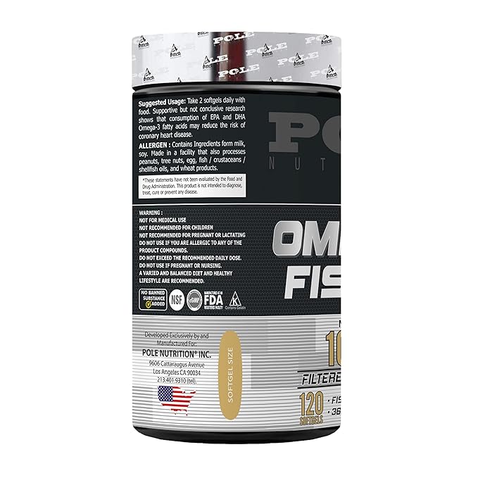 Heart Health Support Pole Nutrition Omega-3 Fish Oil promotes cardiovascular well-being with essential fatty acids. High Potency Formula Each 1000mg softgel delivers a concentrated dose of Omega-3 for optimal health benefits Brain and Joint Function Support cognitive health and joint flexibility with the power of premium fish oil Easy-to-Swallow Softgels Convenient and easy-to-take, making daily supplementation a breeze for overall wellness