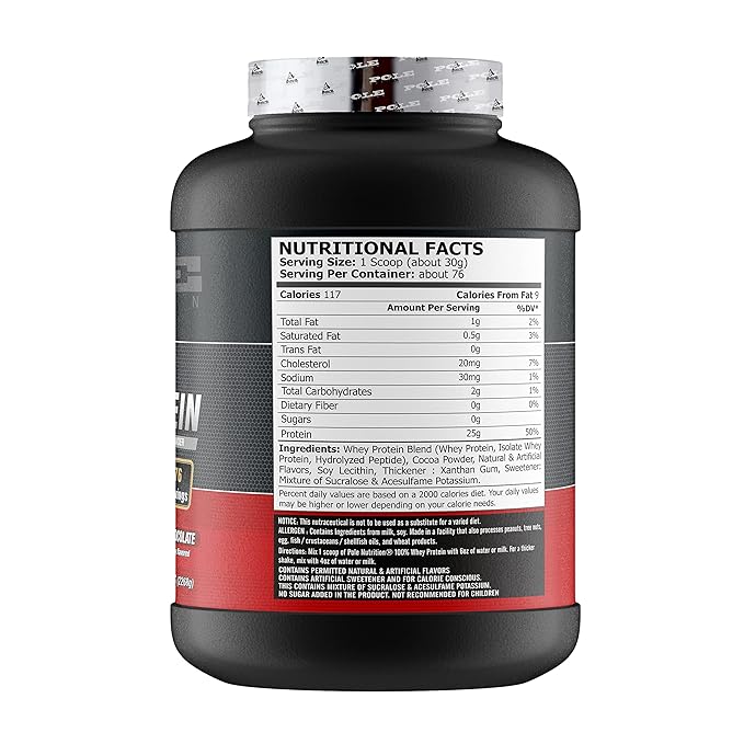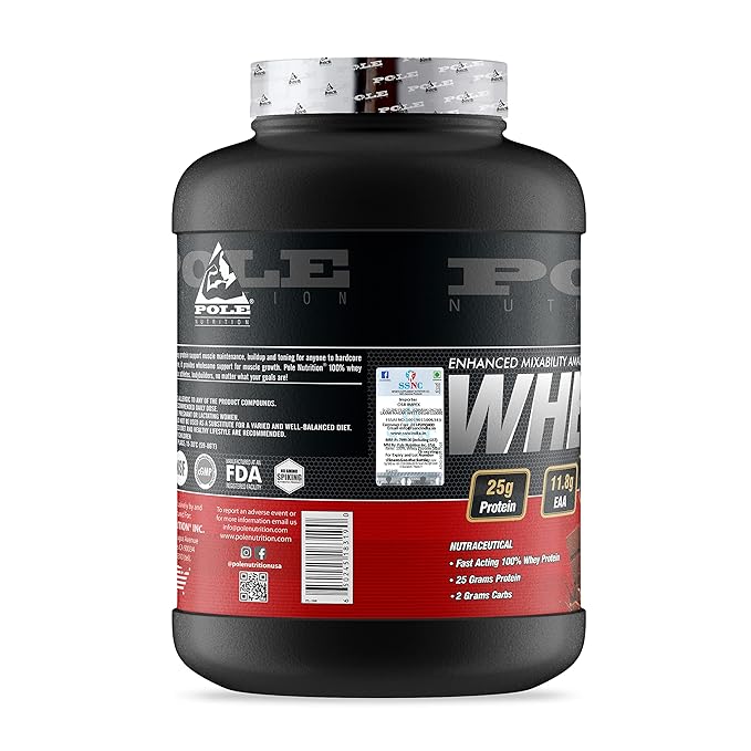 About POLE NUTRITION 100% Whey Protein Powder - Rich Chocolate Flavor, 5 Lbs - 25G Protein, 11.8G Eaa