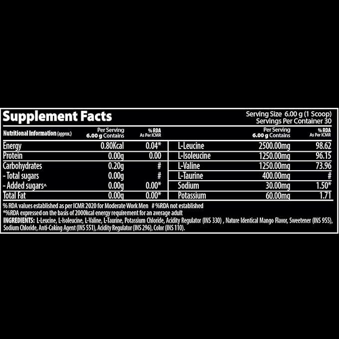 BCAA 8500 is an ideal blend of Leucine, Isoleucine and Valine in 2:1:1 ratio favorable for faster muscle recovery and enhancing workout performance. It is the ultimate supplement for sports amateurs and professional athletes aiming to develop and maintain their muscle mass. BCAAs are important for everyone engaged in strength training or high-intensity workouts. It is important to replenish the body with the required quantity as it does not make it naturally. The right ratio of Leucine, Isoleucine, Valine and Taurine in BCAA Powder 8500 promotes muscle growth and repair. It is designed to reduce fatigue and promote muscle endurance for an intense workout. This pleasant and flavorful thirst-quenching powder has been designed to be easy to drink. You can make it quickly and consume it during or post-workout.