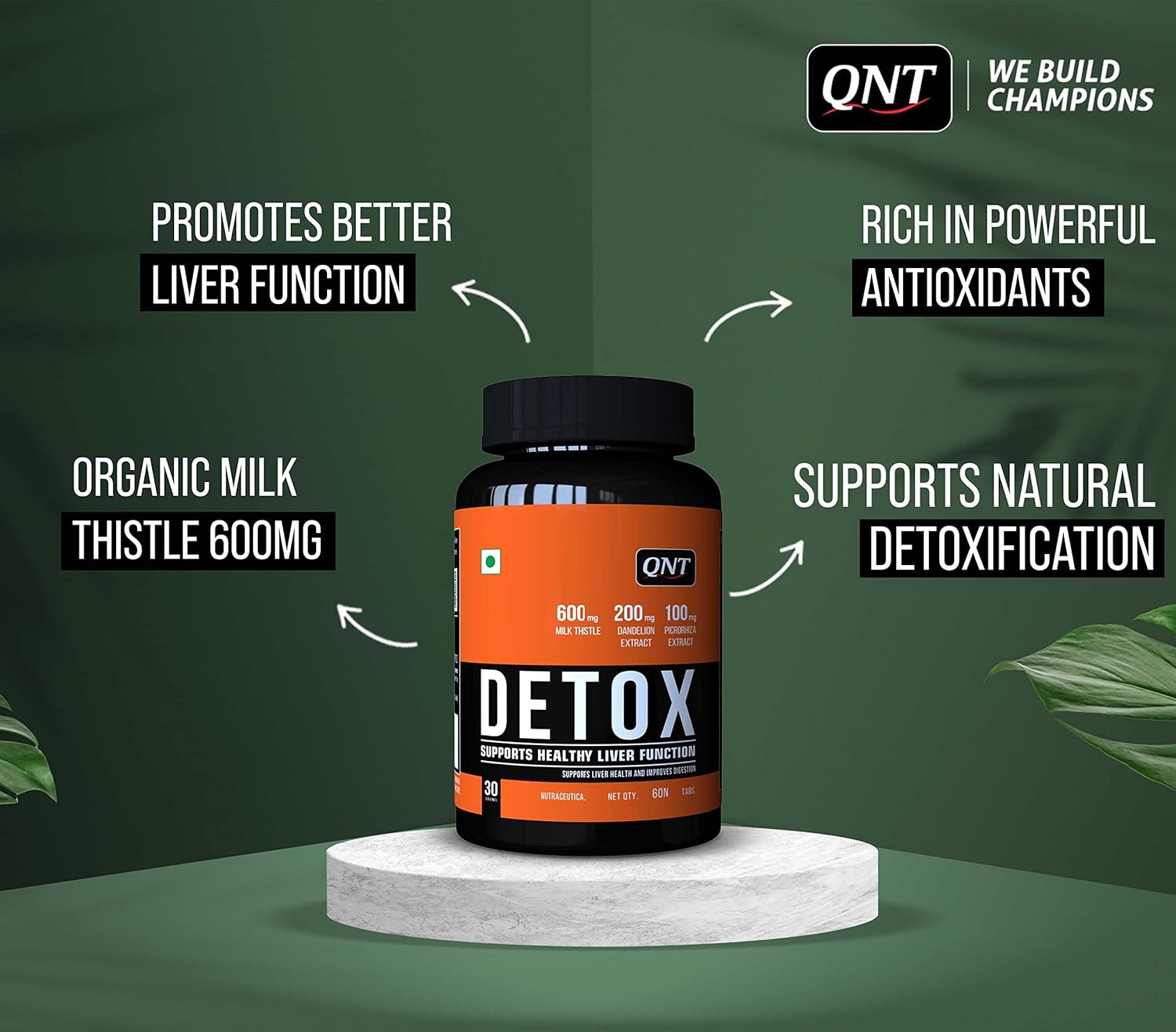 About QNT Detox | 30 Servings, 60 Tabs| Milk Thistle, Dandelion Extract, Green Tea Extract | Supports Liver Health and Improves Digestion