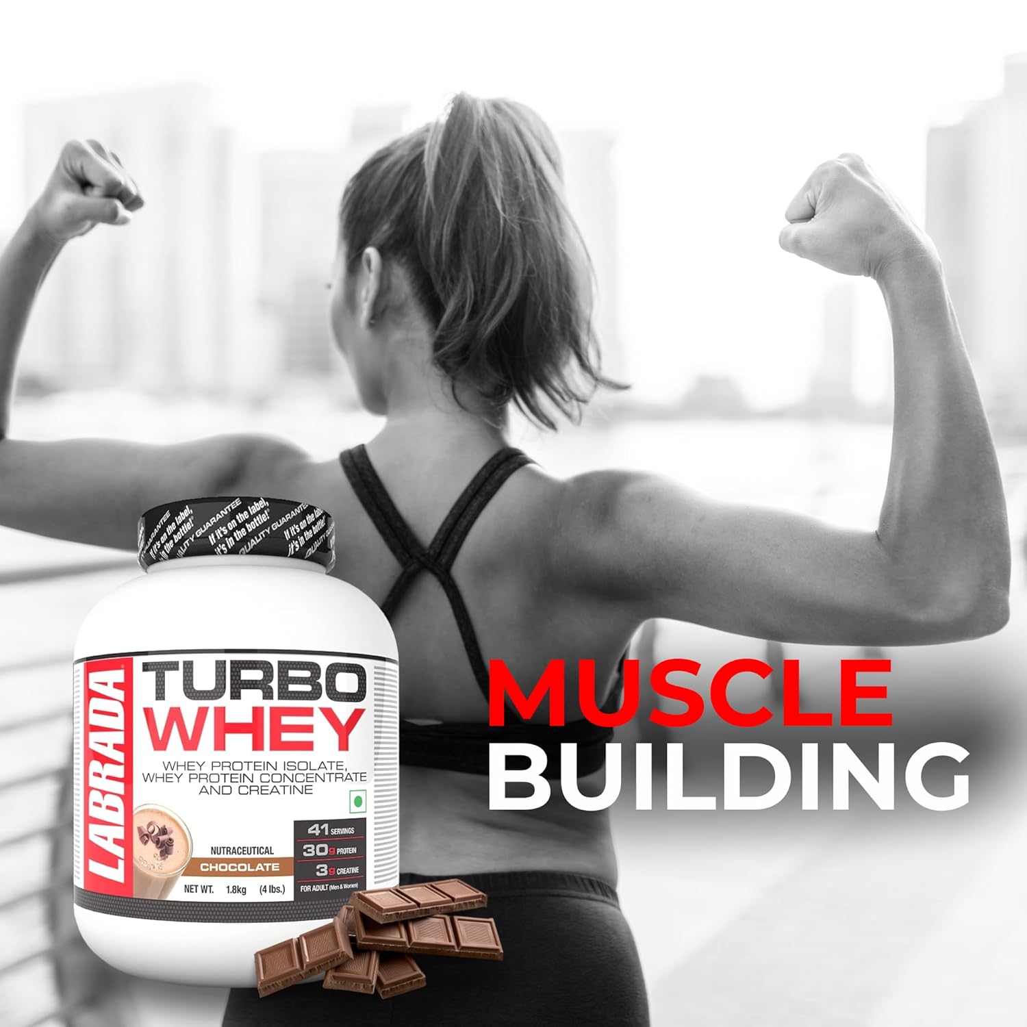 Labrada TURBO WHEY packs 30g of protein and 3g performance enhancing creatine per serving and is an excellent source of all the essential amino acids, including the branched chain amino acids (BCAAs) to provide support for muscle tissue; and glutamine, to promote recovery from exercise.